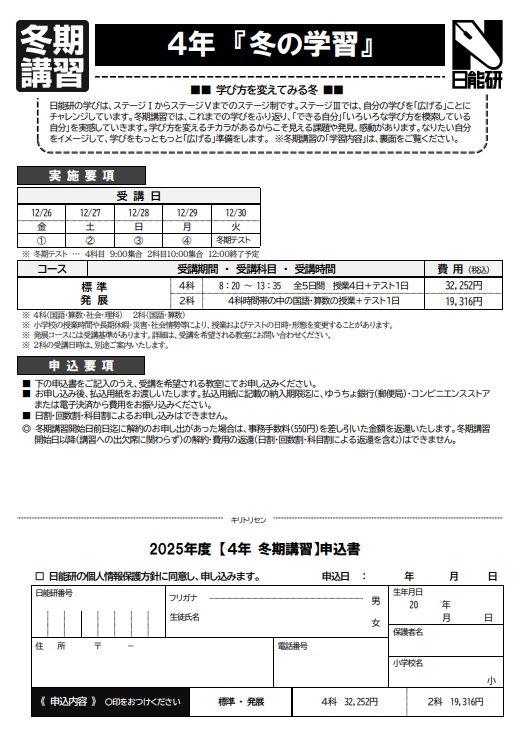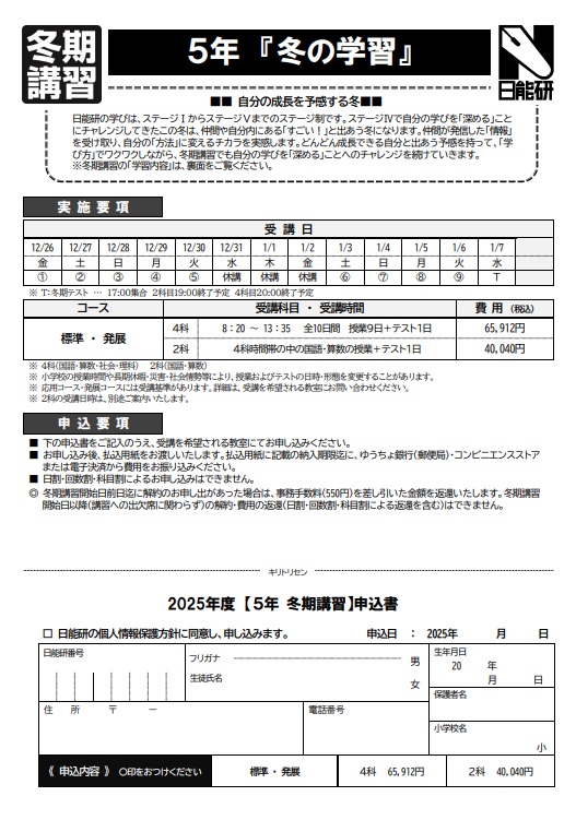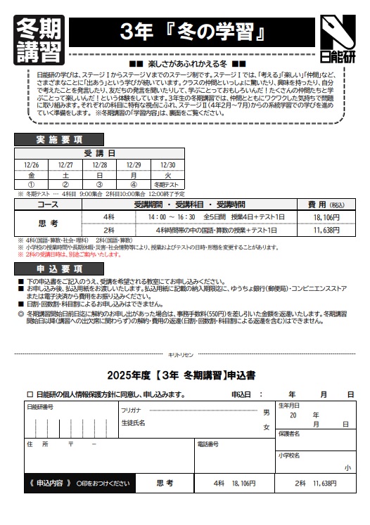 募集要項は下記の画像をクリックしてご確認ください。1月11日(日)実施 3〜5年生募集要項